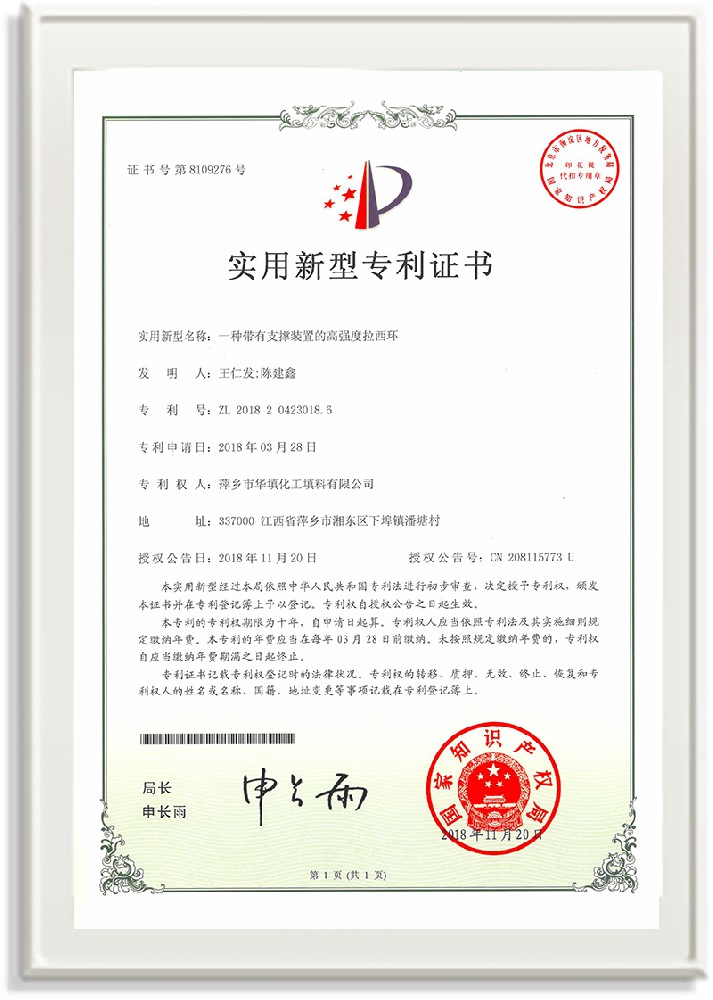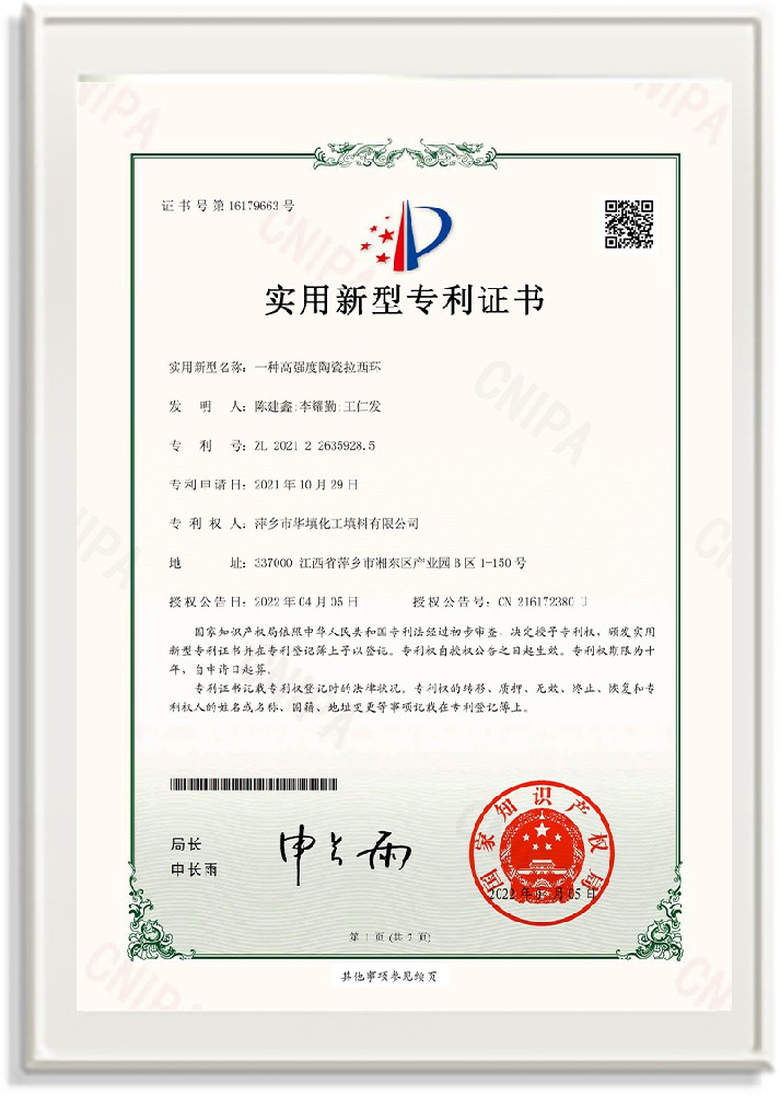 萍鄉(xiāng)市華填化工填料有限公司,位于320國道、109國道、浙贛鐵路、昌金高速公路貫穿其中,交通便利,是江西西部一顆燦爛明珠,創(chuàng)建于20世紀70年代初期,是中國石油天然氣股份有限公司“能源一號網(wǎng)”會員企業(yè)、中國石化物資采購電子商務網(wǎng)絡和中國海洋石油總公司采辦業(yè)務系統(tǒng)成員單位,是上海大學江西材料基因組工程產(chǎn)業(yè)研究院工業(yè)陶瓷產(chǎn)業(yè)創(chuàng)新聯(lián)盟基地,且通過ISO9001:2015質(zhì)量管理體系、ISO14001:2015環(huán)境管理體系、ISO45001:2018職業(yè)健康安全管理體系認證的化工填料生產(chǎn)企業(yè)。公司擁有陶瓷、塑料、金屬填料、催化劑、活性氧化鋁、分子篩等產(chǎn)品生產(chǎn)線,現(xiàn)有固定資產(chǎn)3616萬元,占地面積3.8萬平方米。公司具有悠久的生產(chǎn)歷史、雄厚的技術力量和先進的生產(chǎn)工藝設備,可生產(chǎn)工業(yè)瓷球(支撐劑)、陶瓷、金屬、塑料質(zhì)的規(guī)整、散堆化工填料及分子篩、催化劑、生化濾料、活性氧化鋁、石化助劑、活性炭、環(huán)保材料、耐火材料等系列的200多種規(guī)格型號產(chǎn)品。